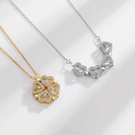 El Collar Trébol de Corazones 2 en 1 es una joya delicada que simboliza amor y buena fortuna, permitiendo llevarlo como un trébol completo o separado en 4 corazones, ideal para ocasiones románticas y gestos de aprecio.